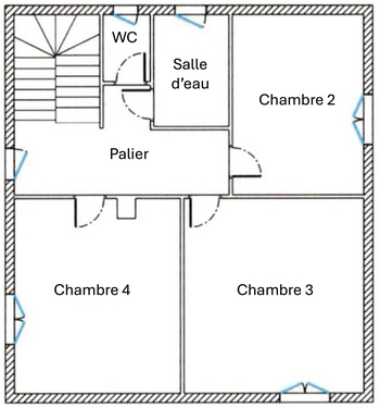 - 1 salle de douche avec WC au rez de chaussée : 6 m2