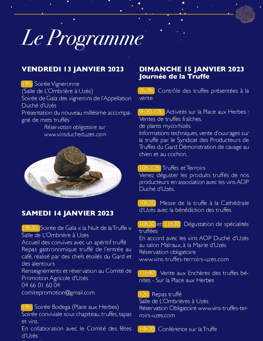 Programm des Trüffelwochenendes- siehe auch auf der Website des Comité promotion agricole d'Uzès.