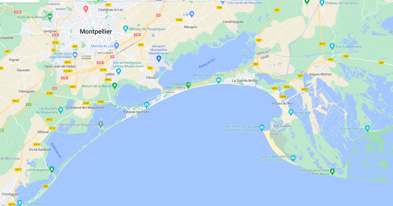 Distance de la mer : 68 km de la mer Méditerranée et des plages (très belle plage l'Espiguette avec une grande bande de sable très longue; attention une partie naturiste est en fin de plage)