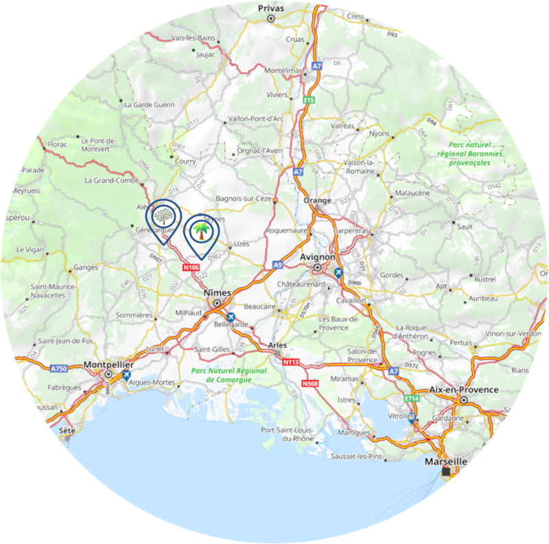 Il est aussi possible d'organiser pour vous une navette pour venir vous chercher à une des gares de Nîmes ou d'Avignon, ou bien d'organiser un taxi selon nos disponibilités.
