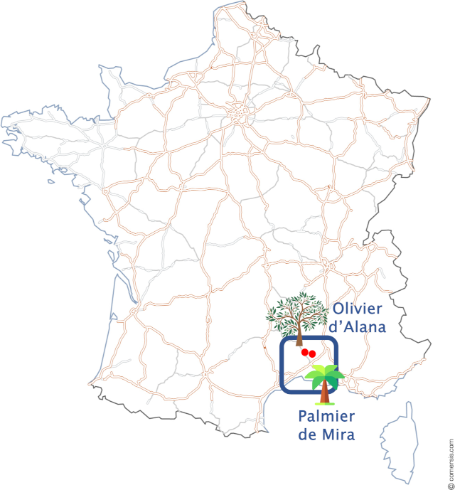 L'Olivier d'Alana bénéficie d'une très terrasse protégée en extension du séjour et de l'espace à vivre du gîte, ainsi que plusieurs petites terrasses avec différentes orientations. Toutes ces terrasses donnent sur un grand jardin et sur une grande piscine qui possède son poolhouse avec sauna et jacuzzi. Le gîte est proche de forêts et d'espaces propices aux balades et à la baignade en rivière le cas échéant.